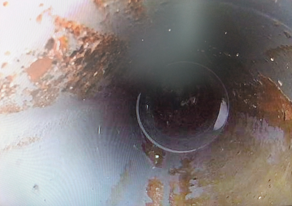 A következő felvétel egy áruház mellékhelyiségéhez tartozó csatornában készült, mely már régóta használaton kívül volt. Jól látható hogy kisebb mennyiségű lerakódás alakult ki a DN 125-ös cső falán, melyet korábbi rendszeres dugulás előzött meg. A vizsgálat célja esetleges kivitelezési hiba feltárása a csatorna rendszeren, ami a szakasz rendszeres eldugulását okozhatja.