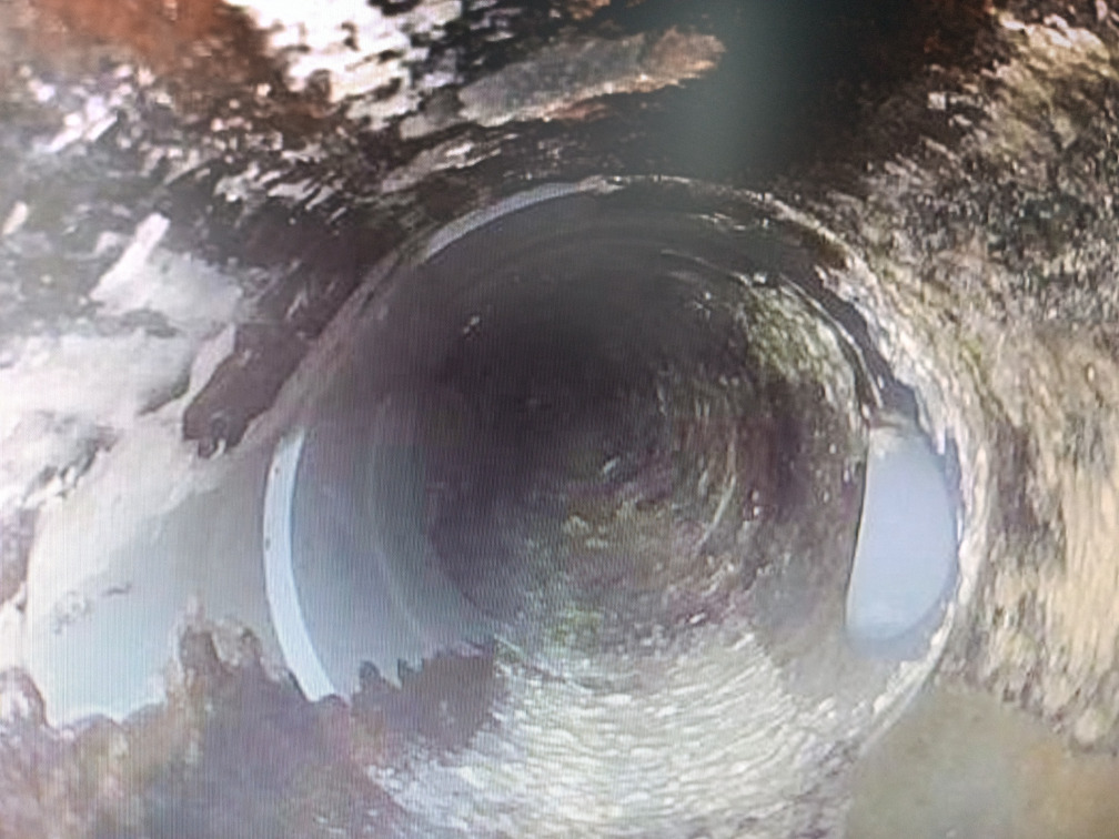 A következő felvétel egy áruház mellékhelyiségéhez tartozó csatornában készült, mely már régóta használaton kívül volt. Jól látható hogy kisebb mennyiségű lerakódás alakult ki a DN 125-ös cső falán, melyet korábbi rendszeres dugulás előzött meg. A vizsgálat célja esetleges kivitelezési hiba feltárása a csatorna rendszeren, ami a szakasz rendszeres eldugulását okozhatja.